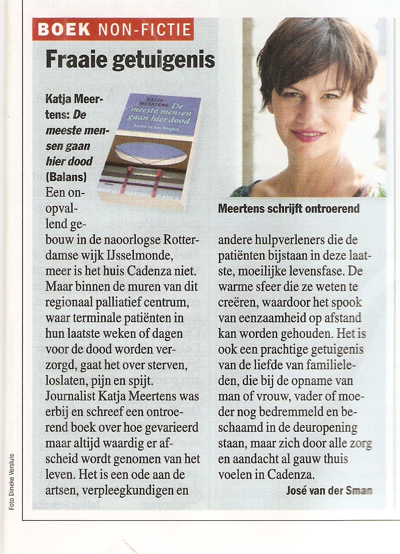 Elsevier vindt De meeste mensen gaan hier dood een ‘Fraaie getuigenis’ zoals te lezen is in de kleine recensie in het nummer van 30 april. Klik hier voor de recensie.